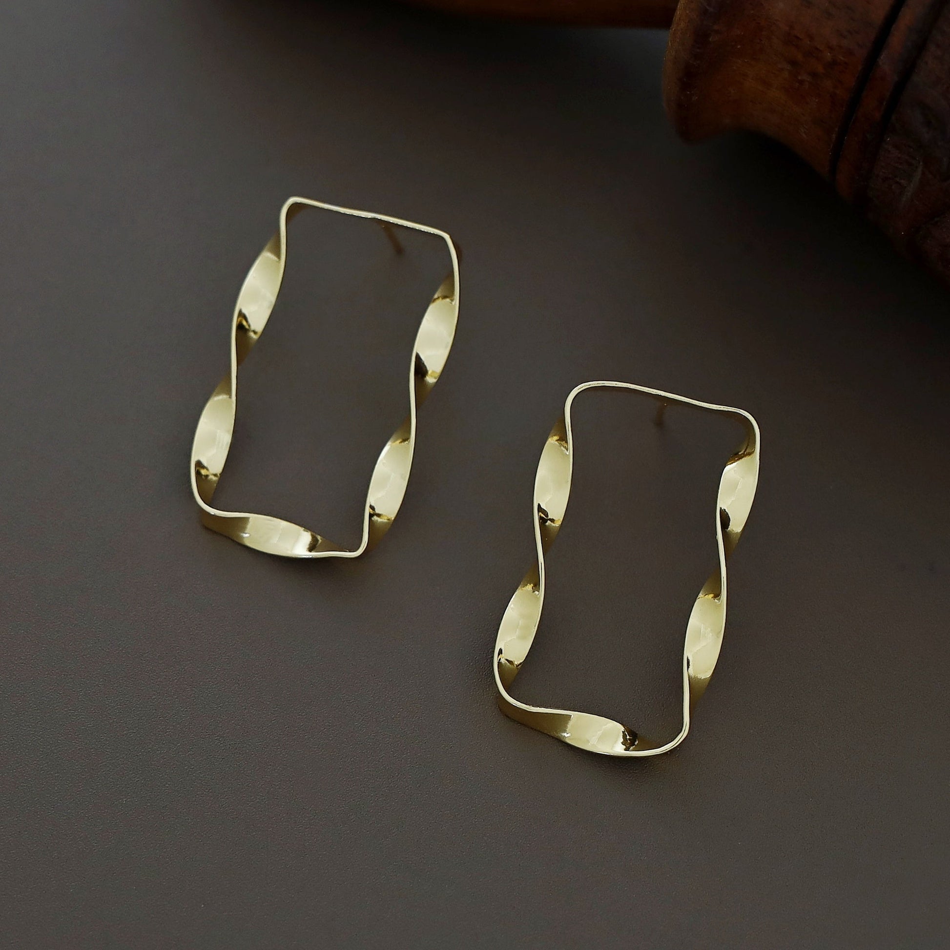 Golden Twisted Rectangle Earring